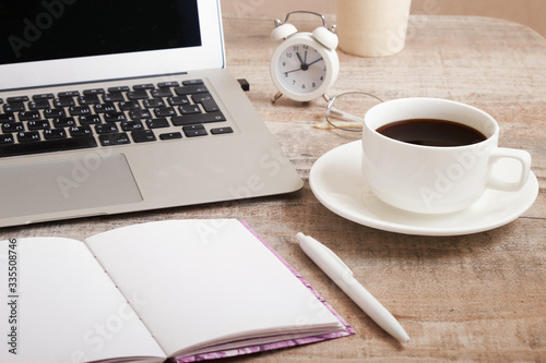remote work at the computer with a Cup of fragrant coffee