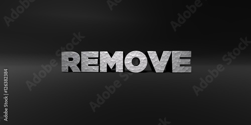 REMOVE - hammered metal finish text on black studio - 3D rendered royalty free stock photo. This image can be used for an online website banner ad or a print postcard.