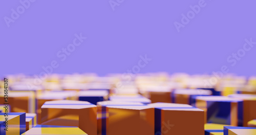Render with yellow blue polygonal pillars in perspective, soft focus