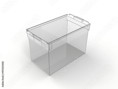 Rendering of a Transparent Rectangular Storage Box on a White Background