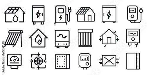 Renewable energy icons set – linear, outline, sustainable power symbols