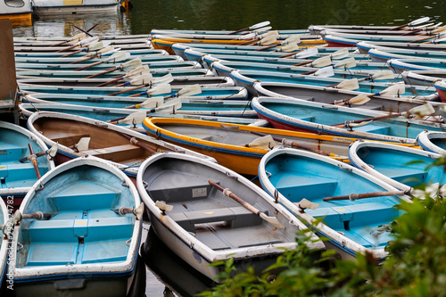 Rentals Boats at boat station on the lake in japanese-style park
