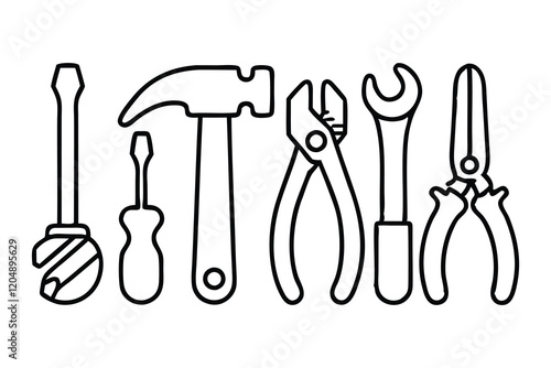 Repair and Construction Tools Hand Drawn Continuous Line art flat vector illustration