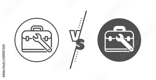 Repair tool case sign. Versus concept. Spanner tool line icon. Fix instruments symbol. Line vs classic tool case icon. Vector