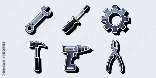 Repair Tools Icons Wrench Screwdriver Gear Hammer Drill Pliers