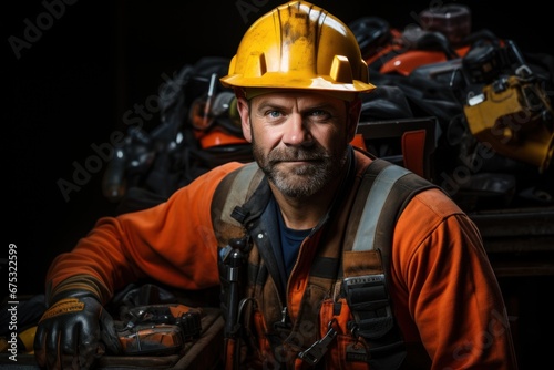 Repairman holding a toolbox and hard hat