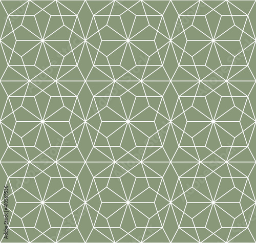 Repeating geometrical decagonal shapes outline pattern in straight white lines. Contemporary vector illustration on a light gray background.