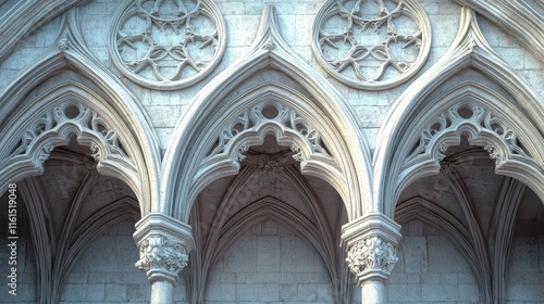 Repeating Gothic arches with detailed stone carvings and elegant curves in a symmetrical design.