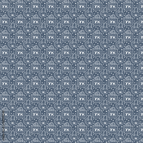 Repeating Hand-Drawn YK Pattern on Dusty Blue Background. AI Generated