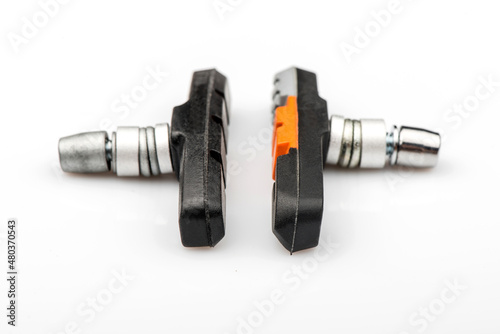 Replacement bicycle v-brake pads from composite material isolated on white background