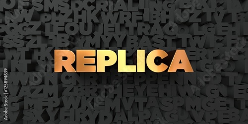 Replica - Gold text on black background - 3D rendered royalty free stock picture. This image can be used for an online website banner ad or a print postcard.