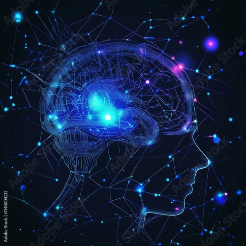 Representation of a Human Brain With Neural Connections and Glowing Stars Against a Dark Background Highlighting the Power of Thought and Cognition in Modern Science
