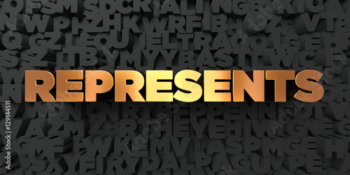 Represents - Gold text on black background - 3D rendered royalty free stock picture. This image can be used for an online website banner ad or a print postcard.