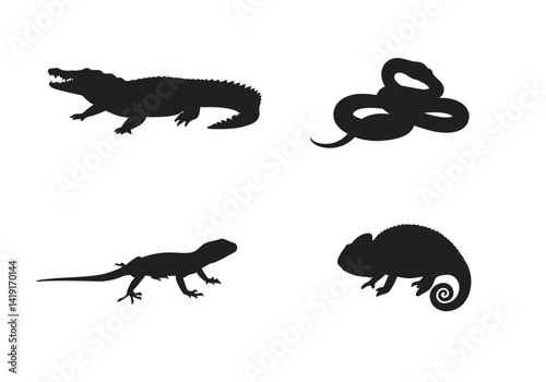 Reptile Silhouettes Crocodile, Snake, Lizard, Chameleon Vector Graphics