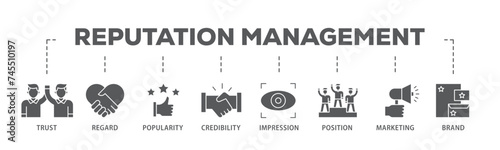 Reputation management banner web icon illustration concept with icon of brand, marketing, credibility, position, impression, popularity, regard, trust icon live stroke and easy to edit