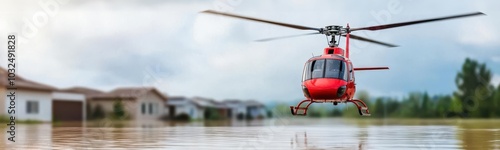 Rescue helicopters hovering over a flood zone, airlifting stranded people to safety during a flash flood, helicopter flood rescue, emergency response