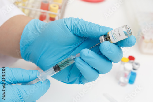 Research and development concept, Laboratory scientist researching covid-19(corona virus) vaccine at laboratory.