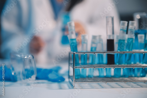 Research, experiment and medical trial being done by a scientist in a lab, science facility or hospital. One young, serious and professional researcher organizing, sorting or making a discovery