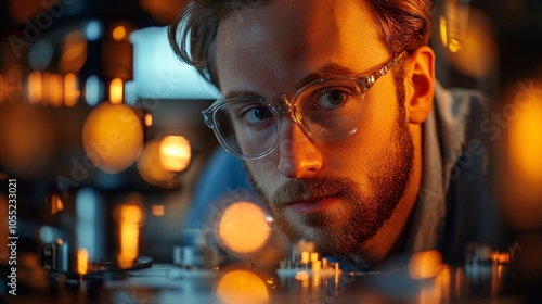 Researcher examining quantum circuits under microscope, high quality, macro lens, DSLR, 16:9