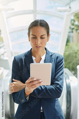 Researching on her way to work. a young businesswoman using a digital tablet on her way to the office.