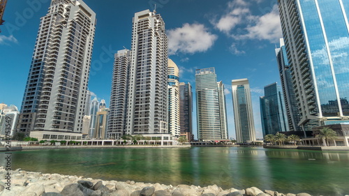 Residential buildings in Jumeirah Lake Towers timelapse in Dubai, UAE.