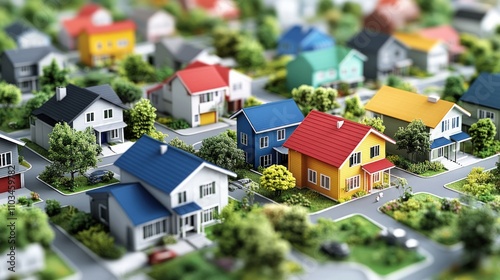 Residential landscape aerial view of a vibrant suburban neighborhood community