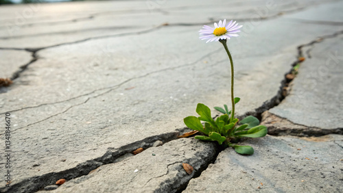 Resilient Flower Growing Through Cracked Concrete Surfaces in Urban Environment