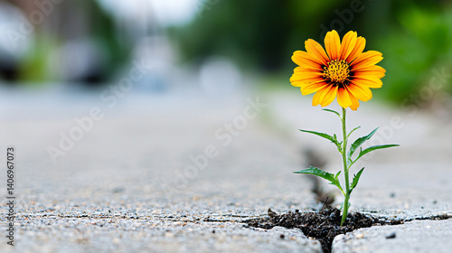 Resilient Yellow Flower Growing Through Concrete Crack Represents Hope and Perseverance