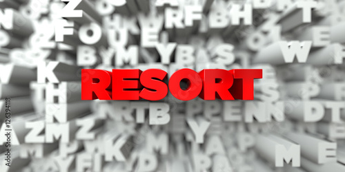 RESORT - Red text on typography background - 3D rendered royalty free stock image. This image can be used for an online website banner ad or a print postcard.