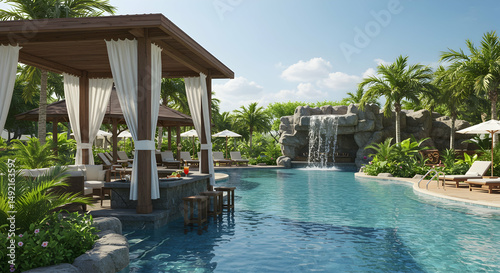 resort, pool, swimming pool, Tropical Resort Pool with Waterfall and Swim-up Bar