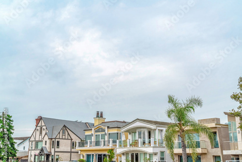 Resort like neighborhood in Long Beach California with homes against cloudy sky