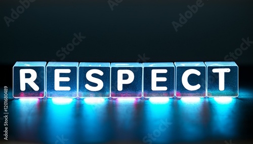 尊敬や敬意を意味する英単語RESPECTの文字が書かれた透明なキューブブロック。 aiで生成