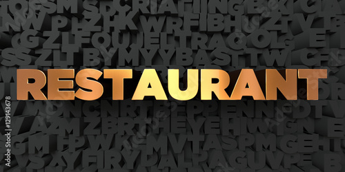 Restaurant - Gold text on black background - 3D rendered royalty free stock picture. This image can be used for an online website banner ad or a print postcard.
