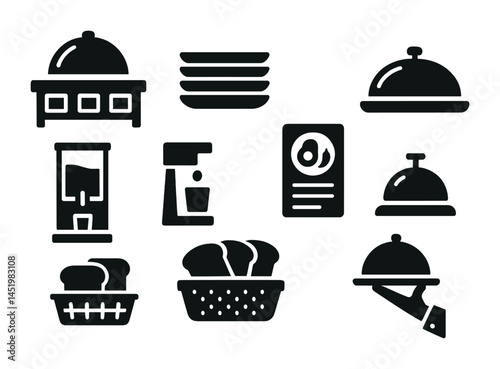 Restaurant and catering solid icons set – flat, filled, food and dining symbols