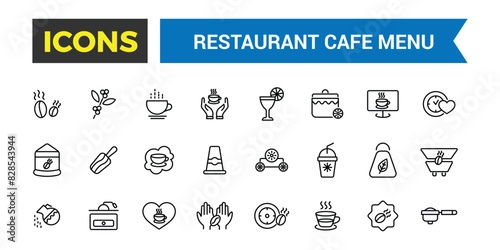 Restaurant cafe menu, food and drink icon set. Outline icons pack. Editable vector icon and illustration.