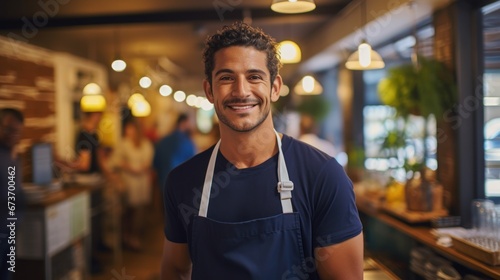 Restaurant entrepreneur with tablet, leaning on door and open to customers portrait. Owner, manager or employee of a startup fast food store, cafe or coffee shop business standing happy with a smile