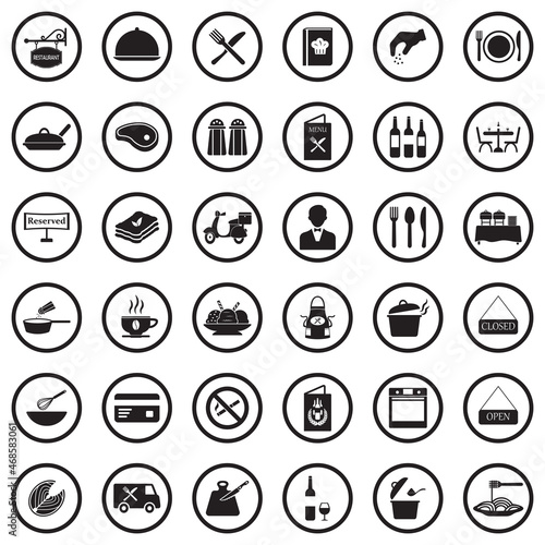 Restaurant Icons. Black Flat Design In Circle. Vector Illustration.