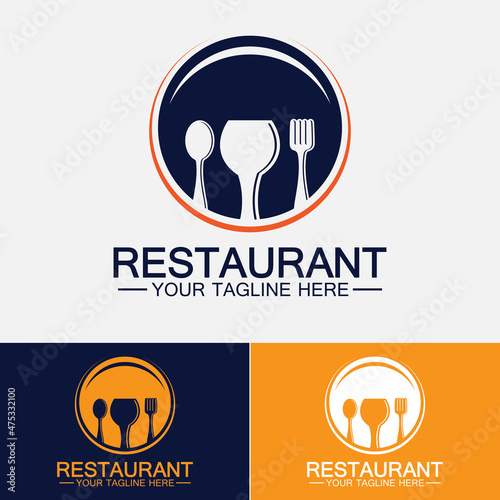 Restaurant logo with spoon and fork icon,menu design food drink concept for cafe restaurant