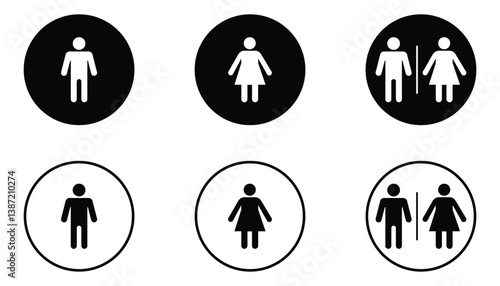 Restroom symbol icon for male and female facilities in a clear design, vector illustration.