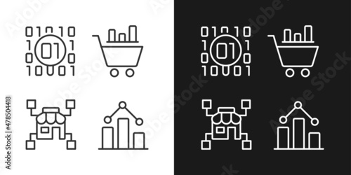 Retail data mining and analytics linear pixel perfect icons set for dark and light mode. Virtual marketing researching. Customizable thin line symbols. Isolated vector outline illustrations