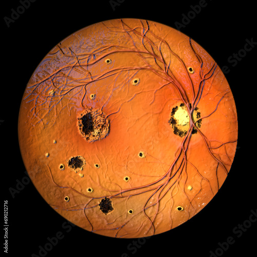 Retina in Ocular Histoplasmosis Syndrome, 3D illustration