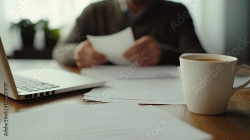 Retirement financial stress in a minimalist office. Featuring doubt and focus