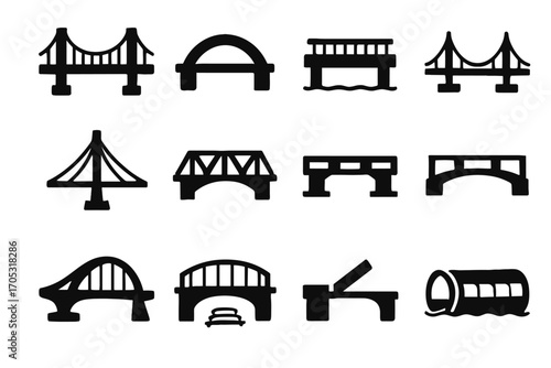 Retractable icons virtual floating bridge icon pedestrian vector modular underwater truss railway