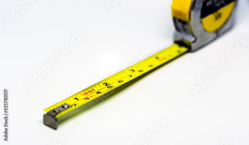 retractable yellow metal measuring tape. Measurements expressed in centimeters and feet.