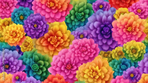 retro 70s groovy floral rainbow pattern