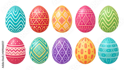 Retro 80s Easter Eggs PNG Set – Bright Neon Geometric Patterns, Colorful Hand-Painted Eggs, Transparent Background