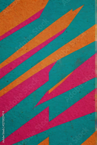 Retro 80s inspired background with bold diagonal stripes in vibrant teal, hot pink, and sunny orange, overlaid with a grainy VHS texture.