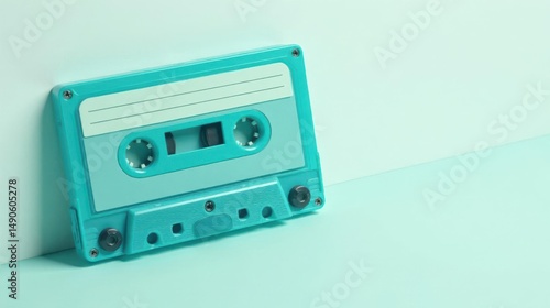 Retro Aqua Cassette Tape on a Light Blue Background A Nostalgic Minimalist Image