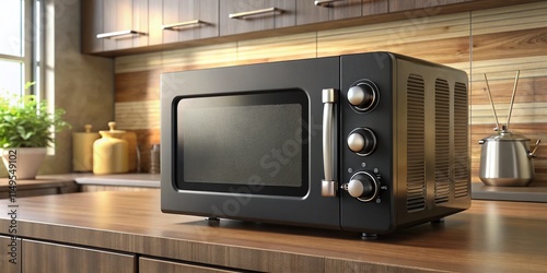 Retro Black Microwave Oven with Knobs - Stylish Kitchen Appliance Stock Photo