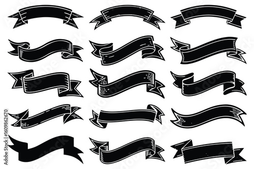 Retro Black Ribbon Banner Vector Set – Vintage Label Elements for Logos and Design